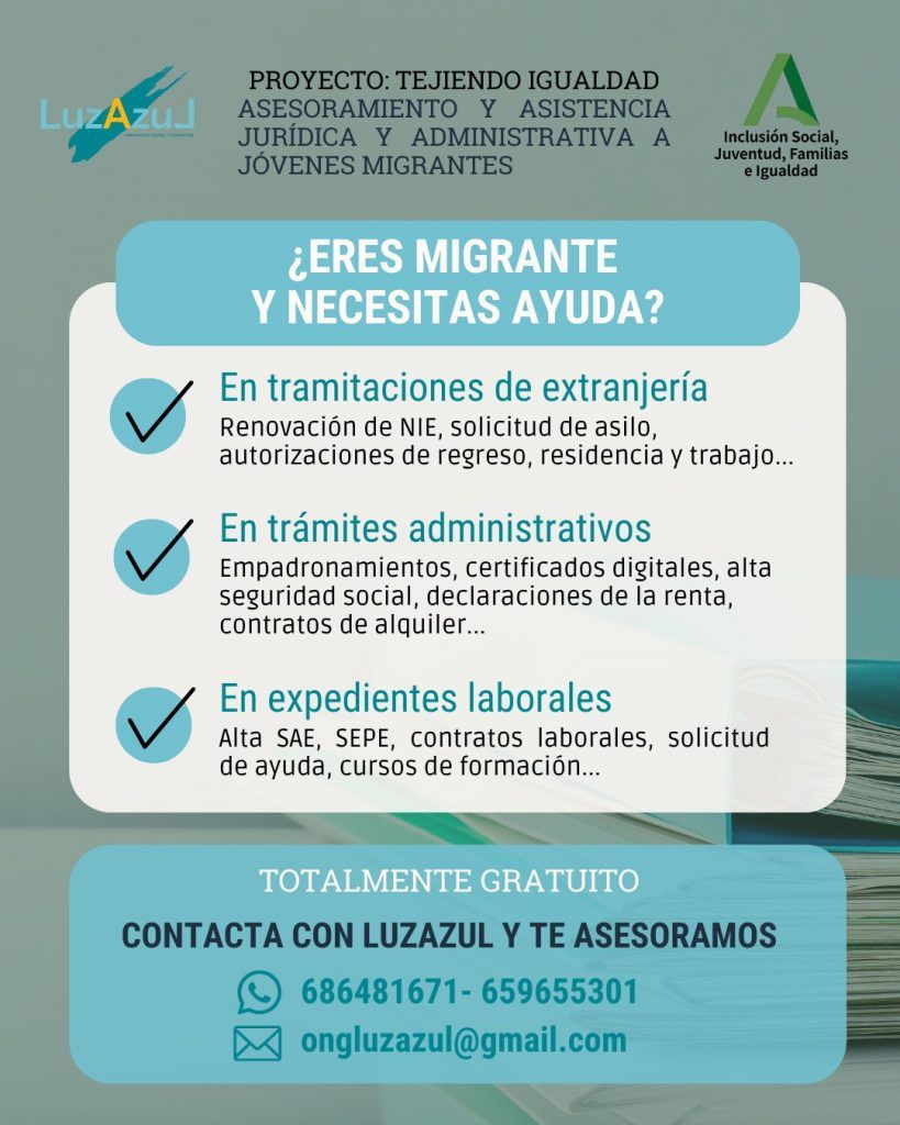 De esta forma, desde LuzAzuL ofrecermos apoyo gratuito en trámites jurídicos y administrativos a cualquier joven migrante que se encuentre en situación de vulnerabilidad.